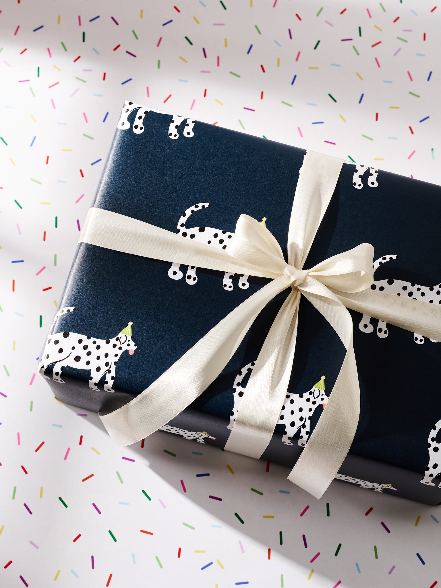A playful birthday wrap featuring festive Dalmatians on one side and colorful funfetti sprinkles on the other — made for joyful celebrations. Perfect for kids’ parties, dog lovers, and anyone who wants their birthday gifts to feel extra fun and full of personality.