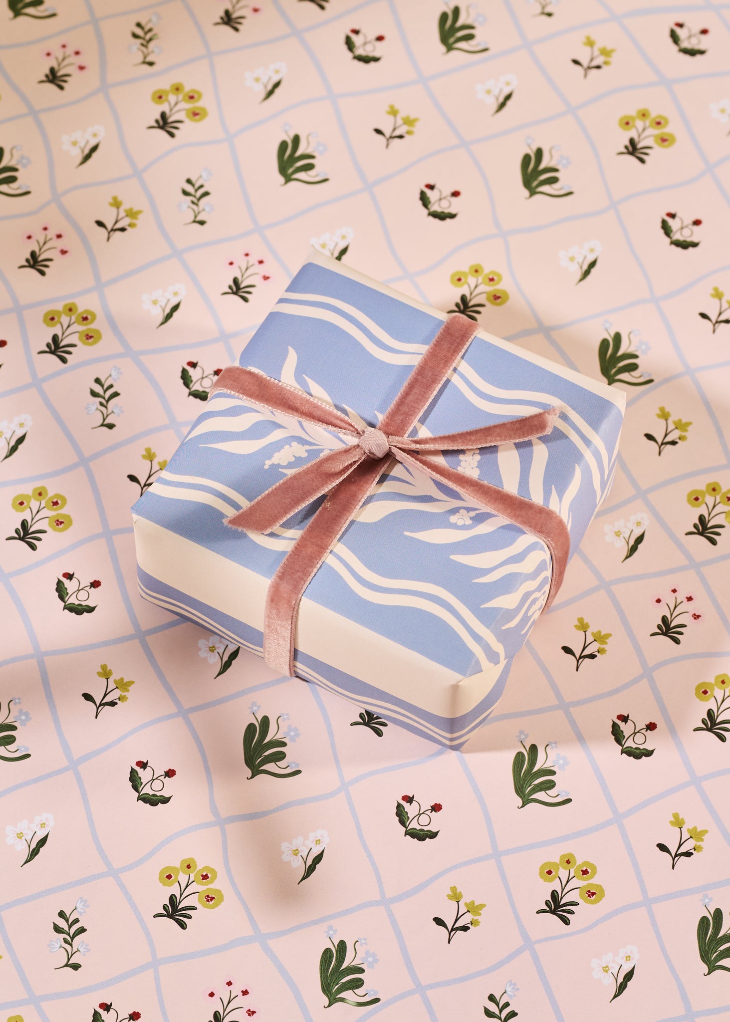 Floral Trellis and Blue Vine Stripe Double Sided Gift Wrap | Set of 3 Sheets