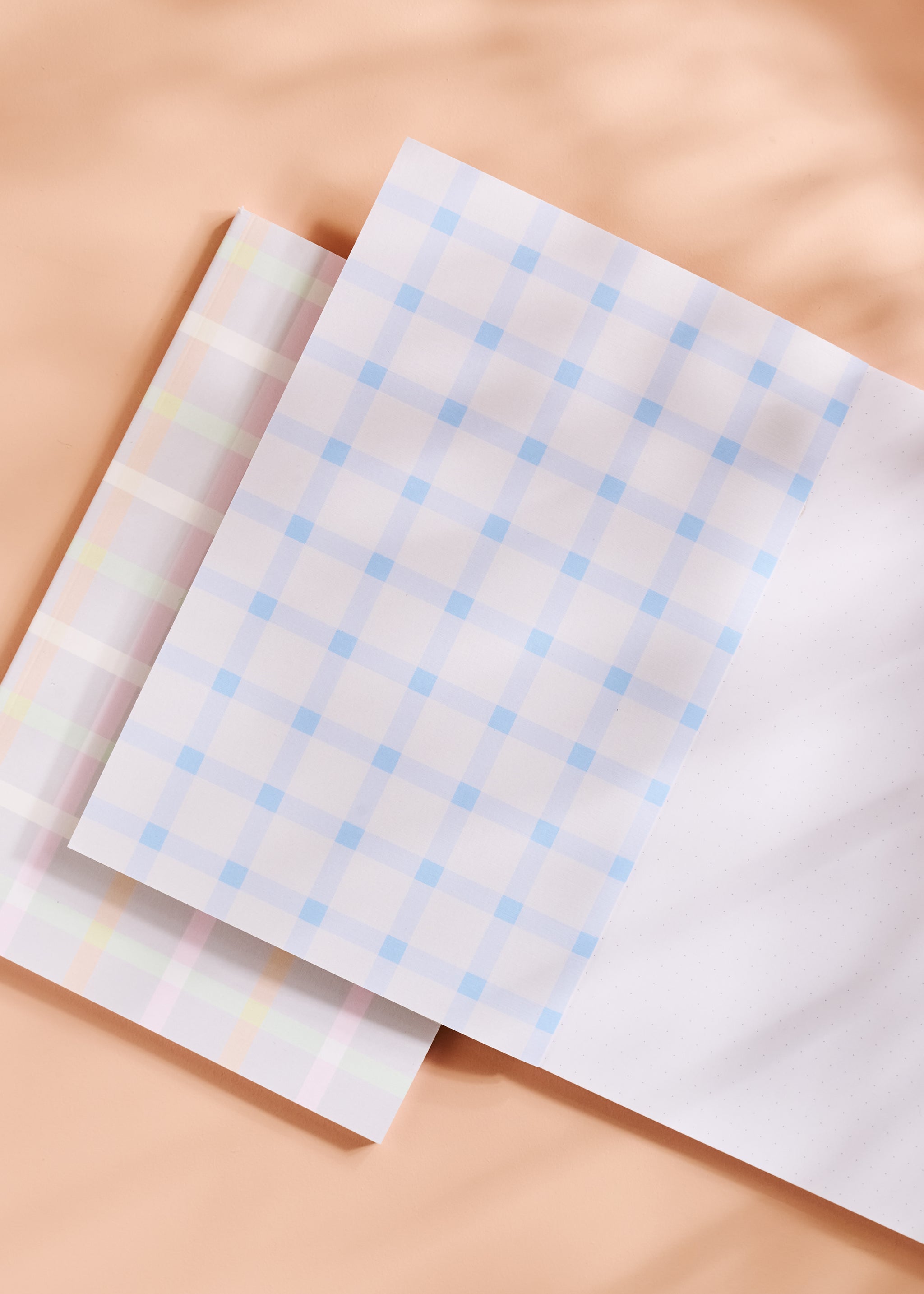 Light and airy, the Pastel Gingham dot grid notebook features a soft plaid pattern in barely-there pastels. It’s simple, sweet, and has a washed-out charm that works year-round.
