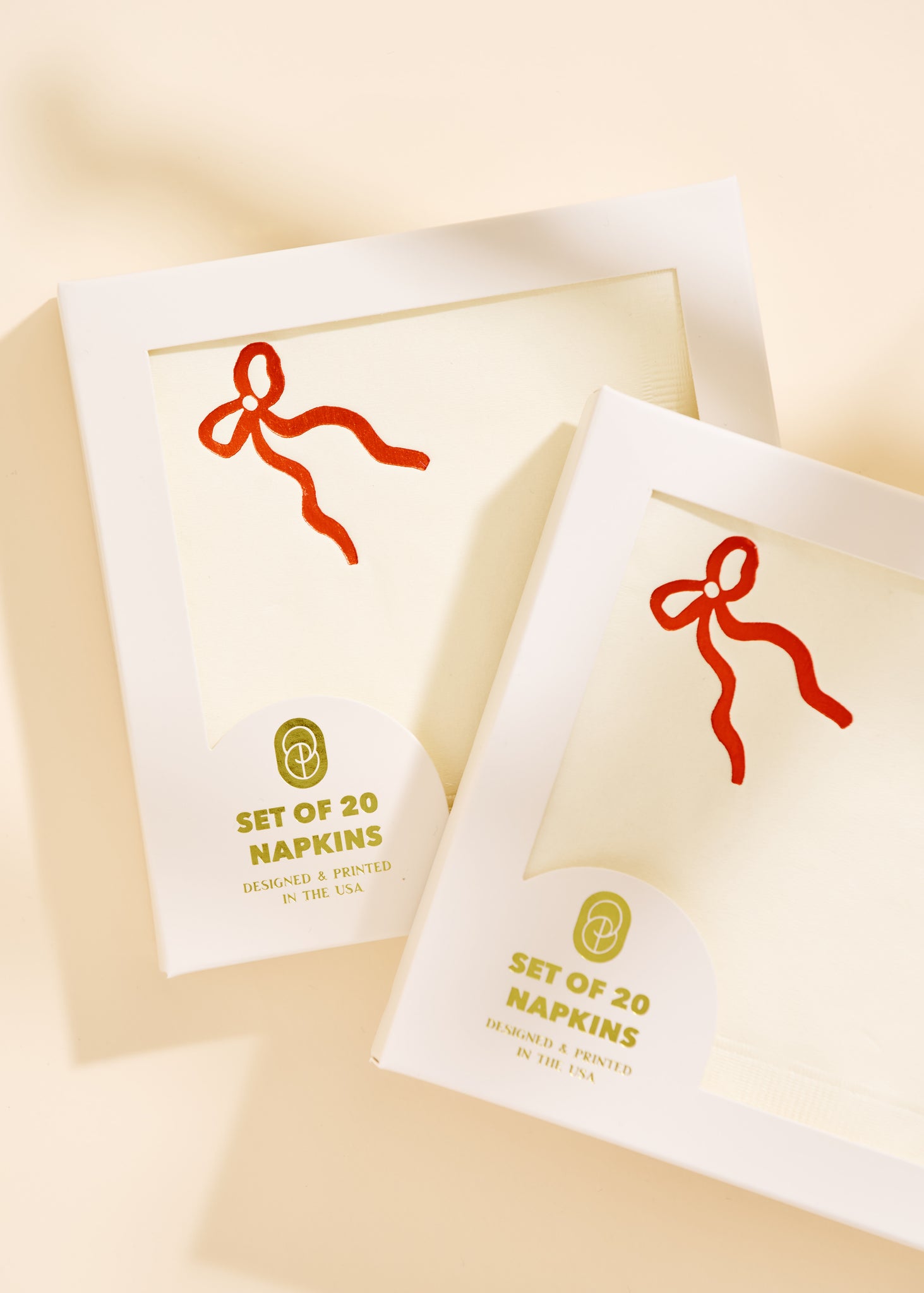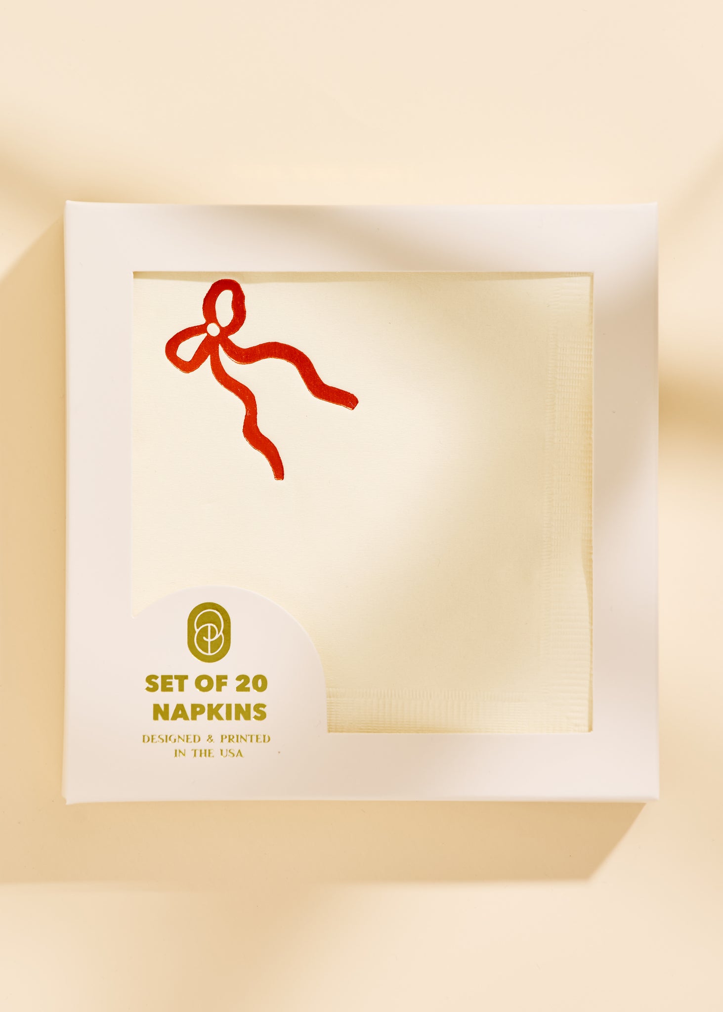 Classic Red Bow Cocktail Paper Beverage Napkins - Set of 20
