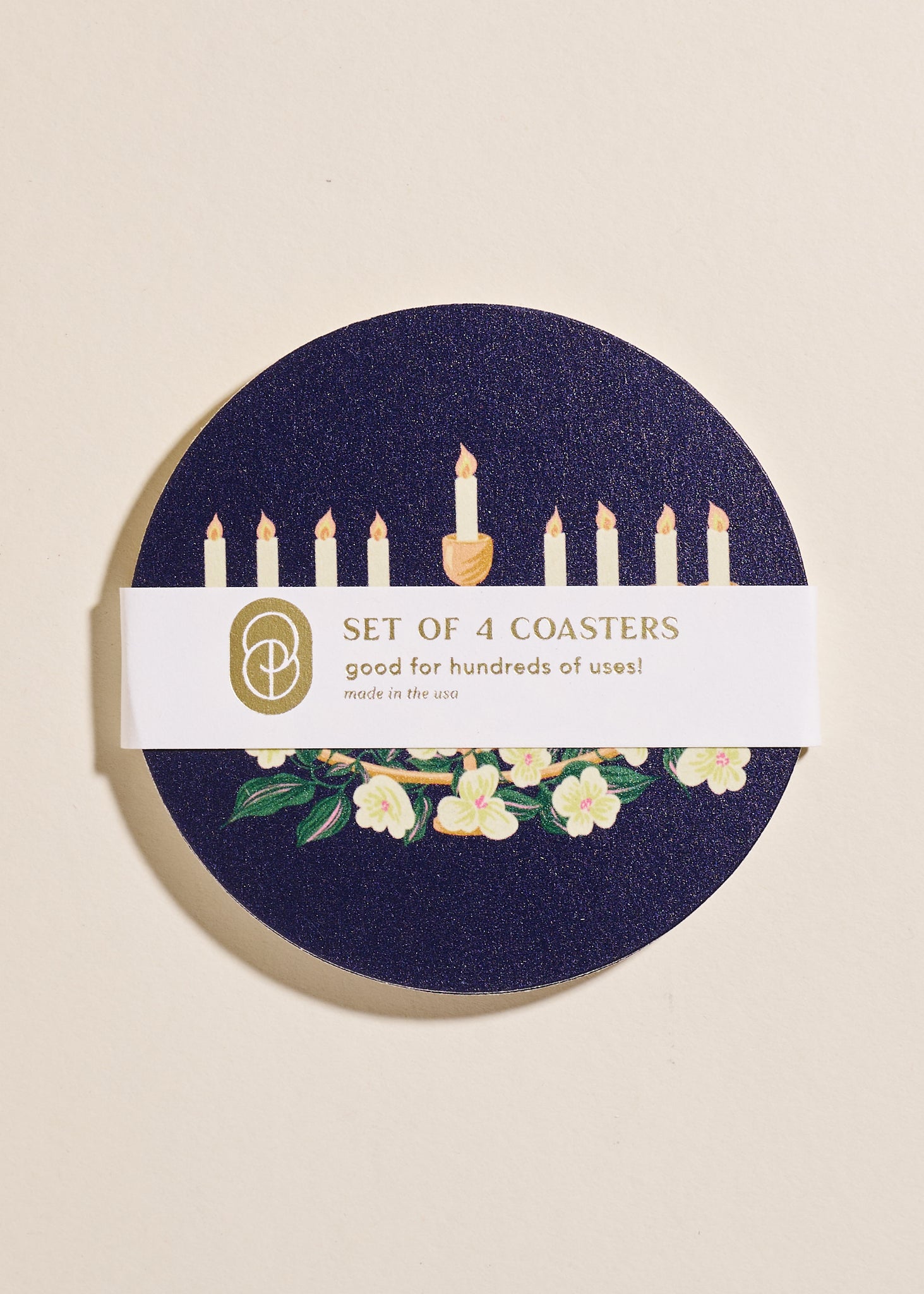 Hanukkah Floral Menorah Coasters | Set of 4