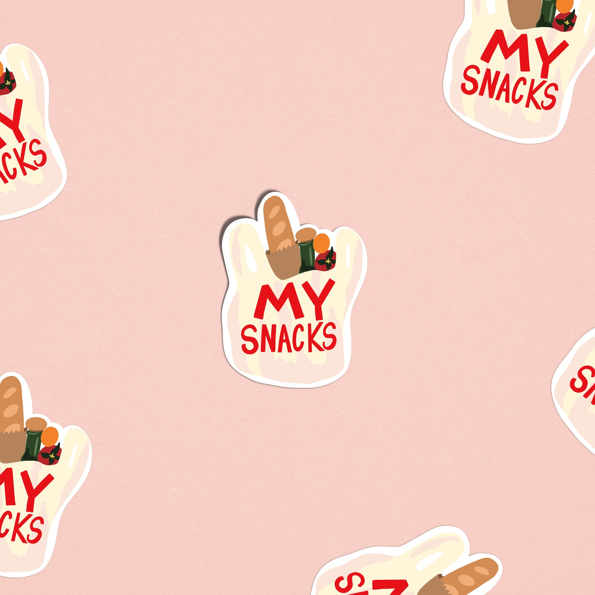 A humorous illustrated shopping bag packed with snacks — ideal for foodies and anyone who takes their treats seriously.