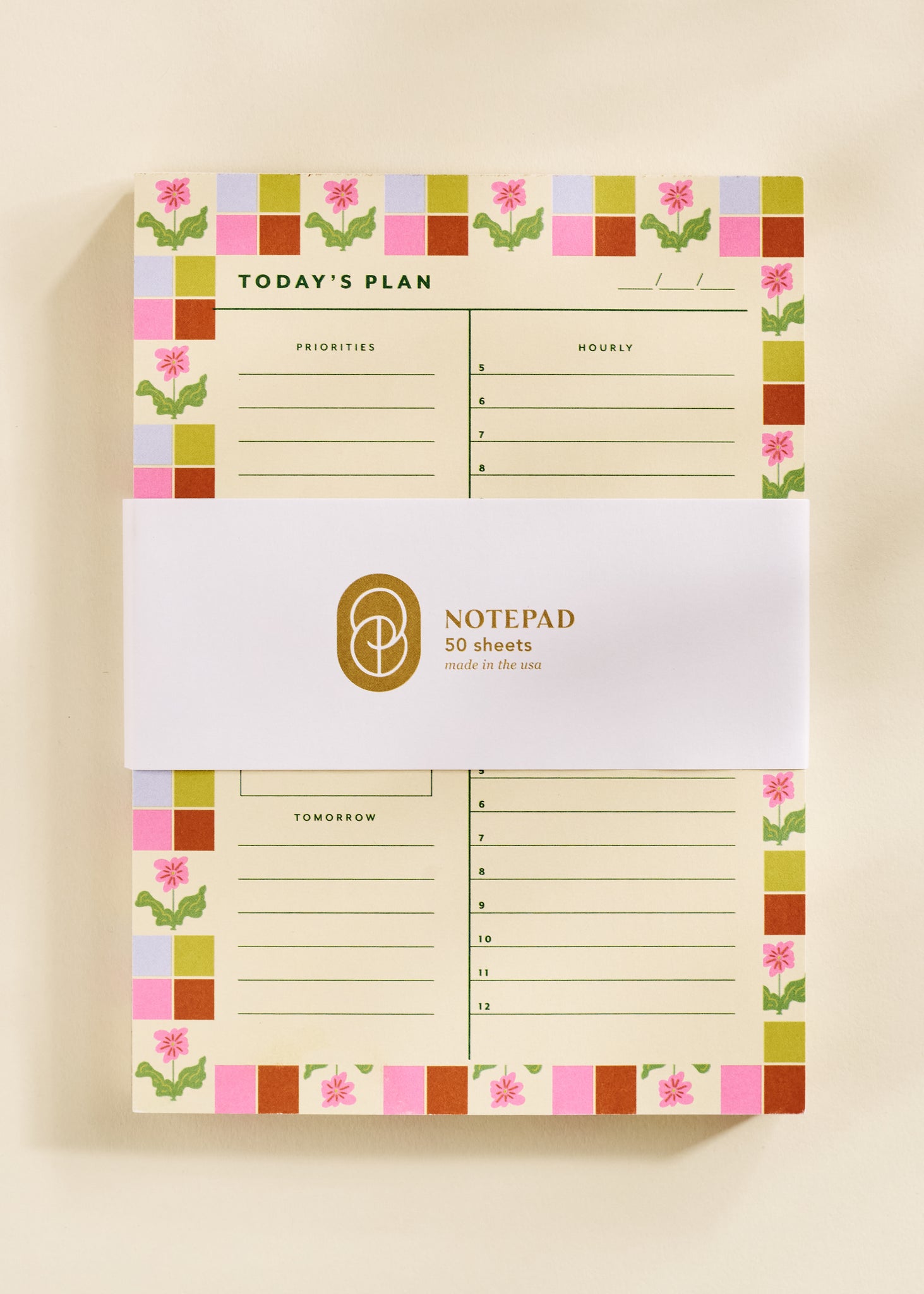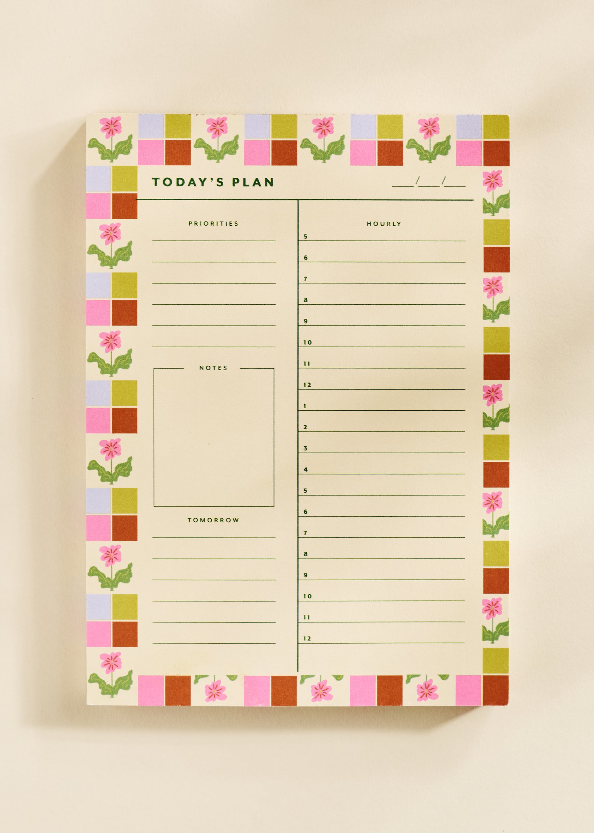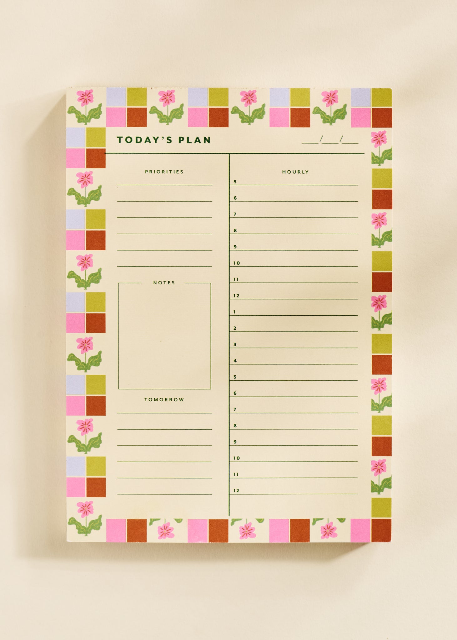 Sweet and structured, this daily planner features a checkered floral border and an hourly layout to help you stay on track. Jot down your priorities, schedule, notes, and tomorrow’s to-dos all in one place.