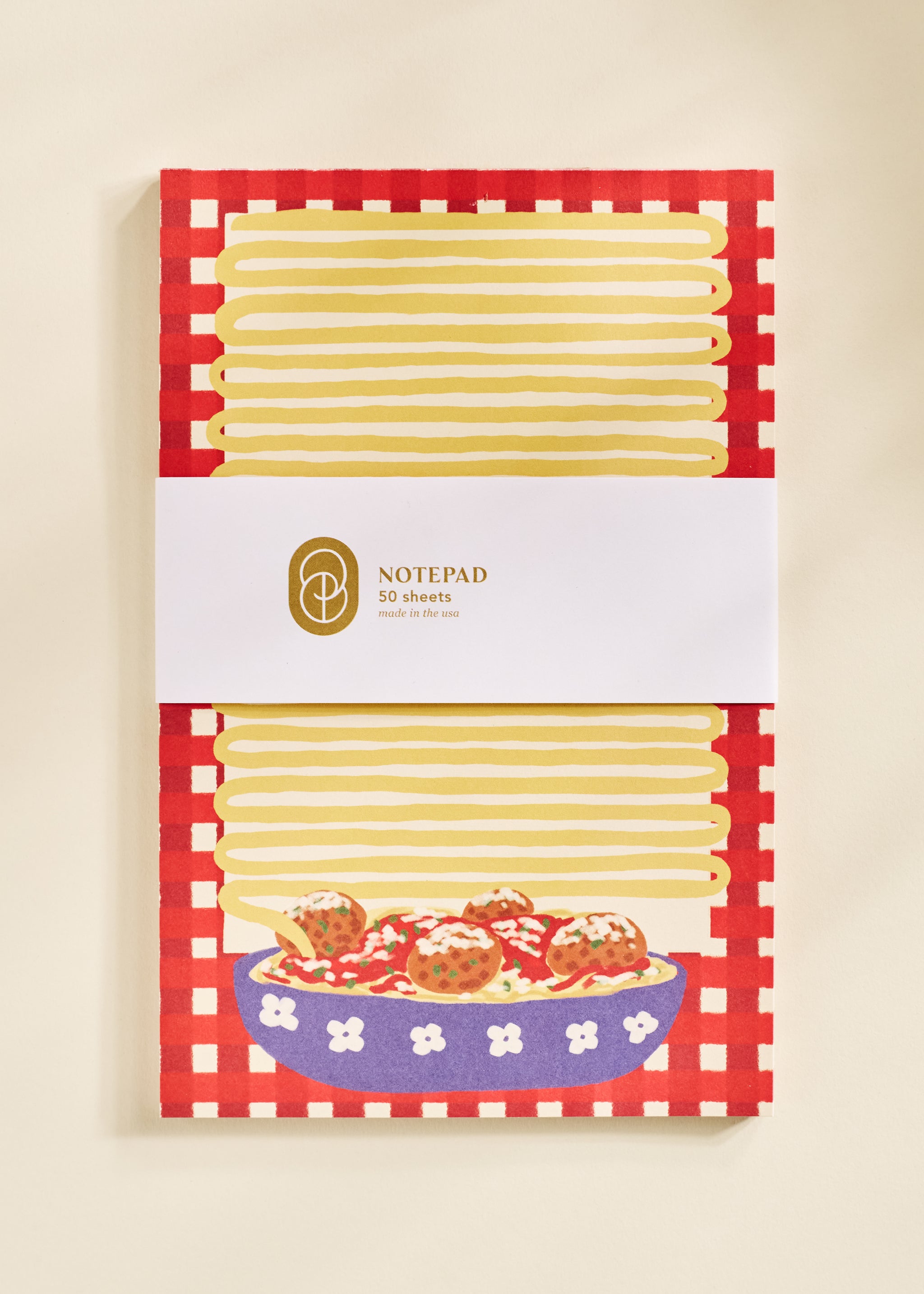 Inspired by red-and-white tablecloths and cozy pasta nights, the Spaghetti & Meatballs Notepad adds playful charm to your grocery list or dinner prep. It’s giving Lady and the Tramp.