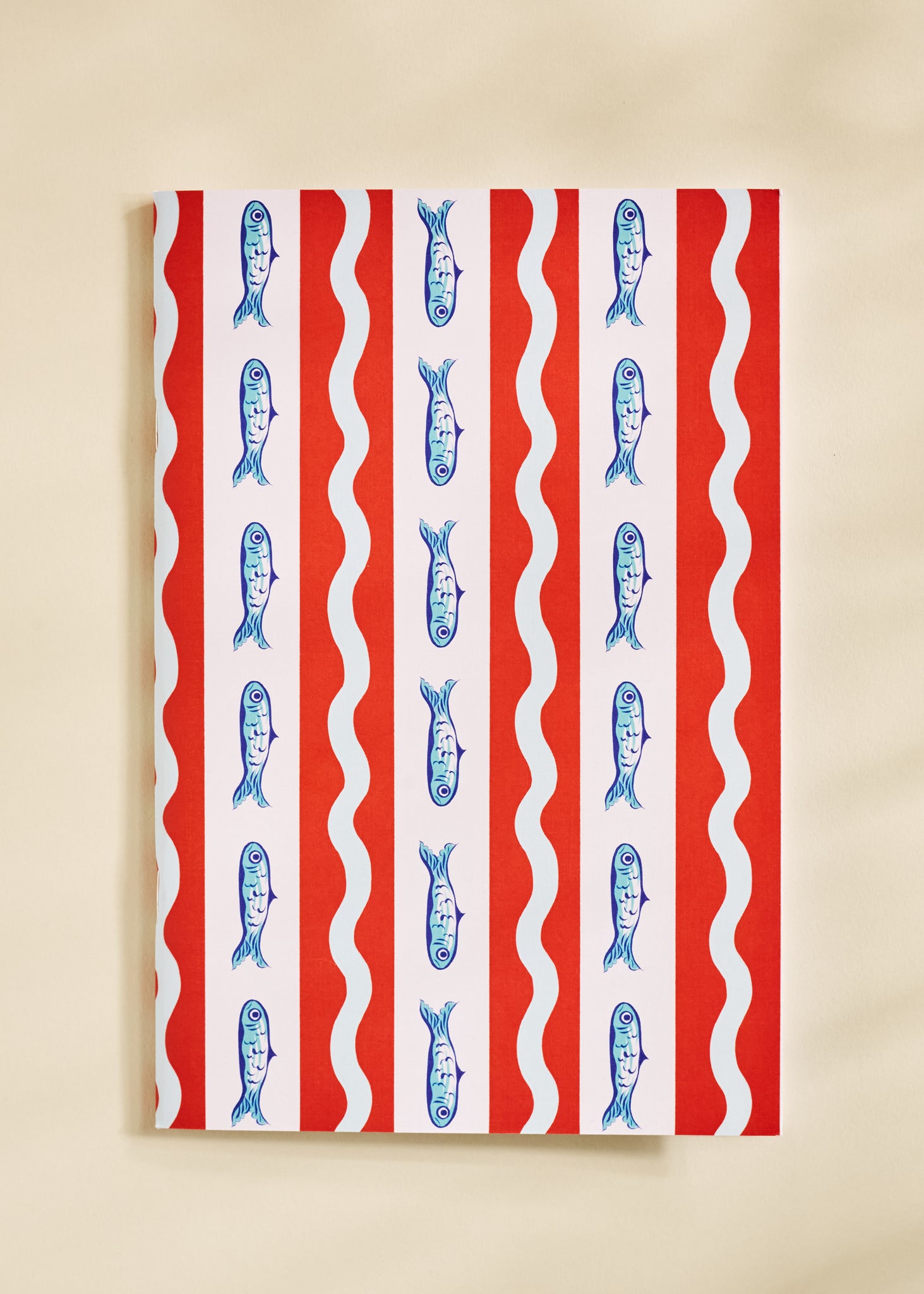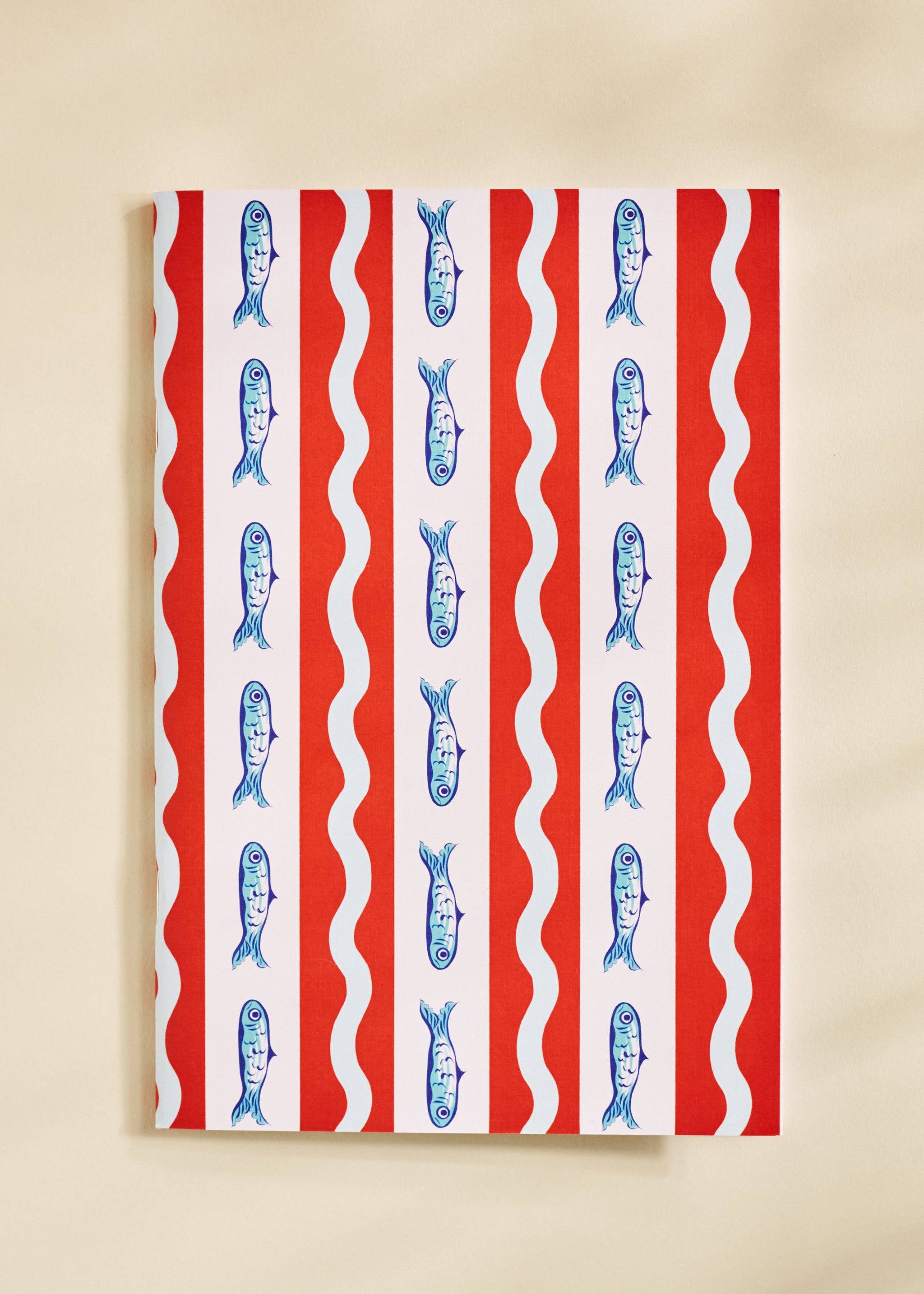 Cheeky and charming, the Sardine Stripe weekly planner notebook brings major Italian market energy with its bold stripes, hand-drawn sardines, and sunny Mediterranean palette.