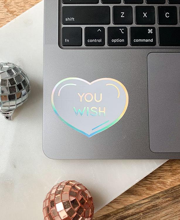 A sweet heart with a sassy message, all on rainbow holographic vinyl.