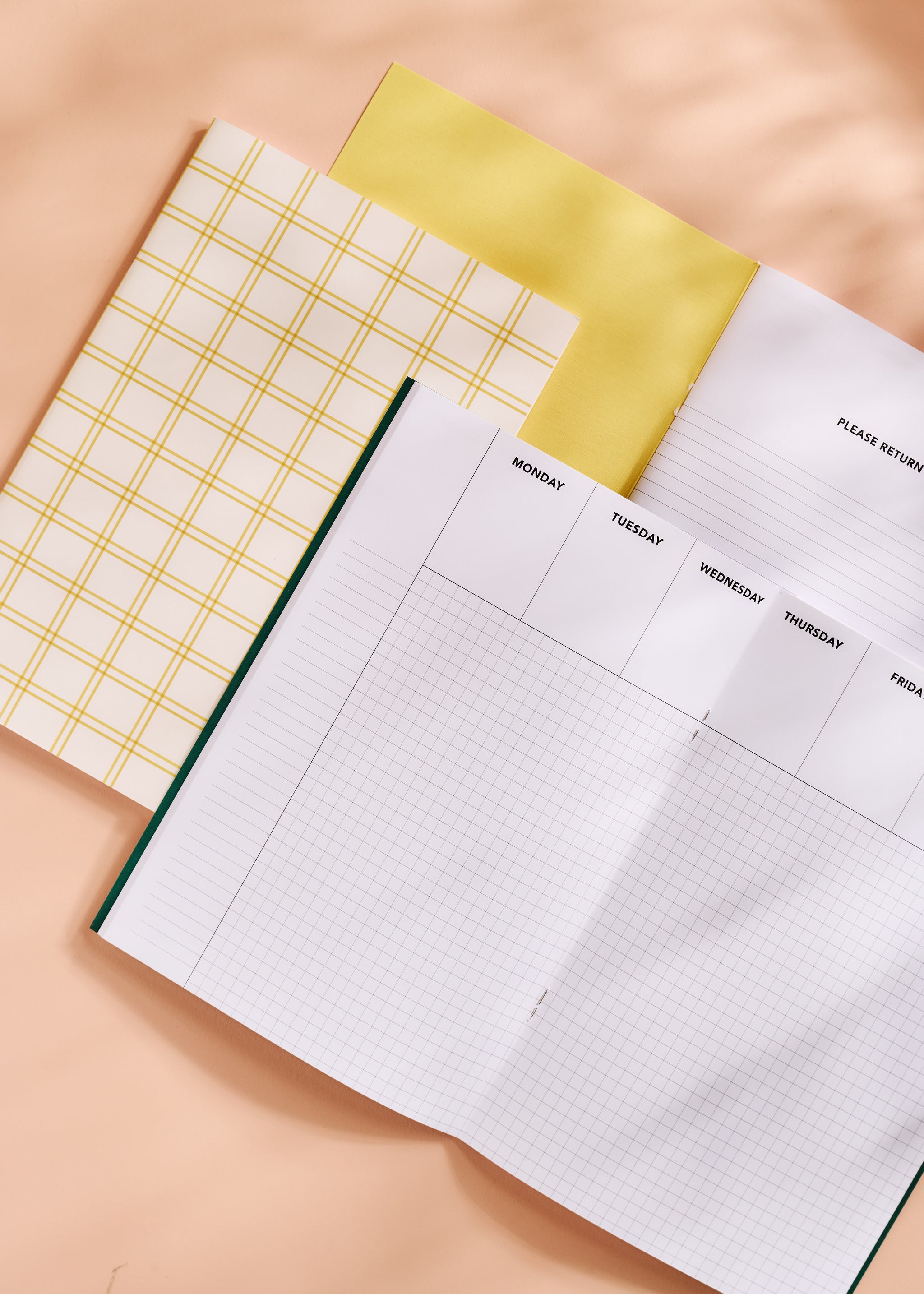 Soft and structured, the Golden Gingham weekly planner notebook features a warm yellow check pattern on a neutral background. It’s equal parts classic and cheerful—perfect for organizing your week without sacrificing style.