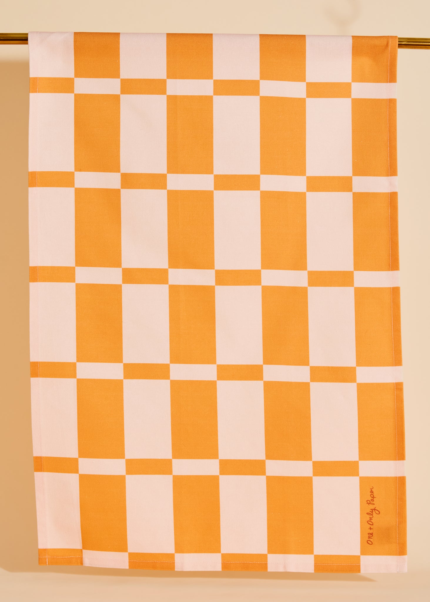 Add a pop of color and playful sophistication to your kitchen with this warm golden checkerboard design. Simple yet striking, it brings a sunny sensibility to your cooking space, coffee nook, or bar cart.